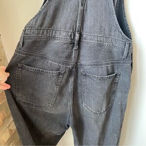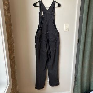 Embrace a timeless utility style with this black jumpsuit from We The Free, featuring a full-length design and adjustable shoulder straps. Crafted from durable fabric, it offers a straight leg cut for a classic and versatile look. Ideal for both work and casual settings, this jumpsuit combines functionality with a sleek aesthetic.