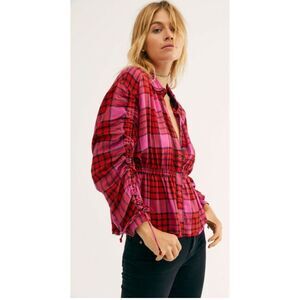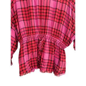 Free People We The Free Pacific Dawn Drawstring Plaid Shirt Red Combo Women's Medium