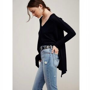 So-soft drippy V-neck thermal in an effortlessly oversized and swingy silhouette with a high-low hem and side vents. Contrast ribbed sides and exposed seam detailing and unfinished hem. You'll wanna wear this one over and over.