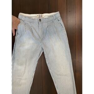 Free People We The Free Pants Size 24 Daydreamer Cotton Railroad Slacks. Blue & white stripped. Front & back pockets. Good used condition. No rips or stains. Purposeful fade design.