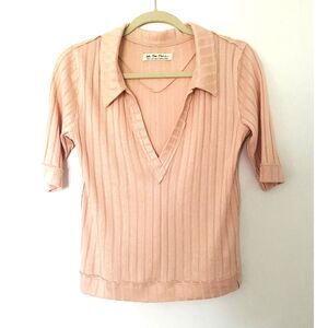 Free People We The Free Peach Krystal Ribbed Elbow Sleeve Collared Polo Shirt S