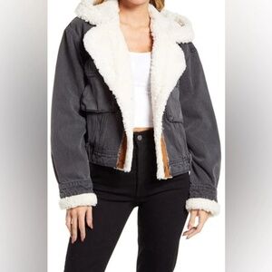 Free People We The Free Perry Hooded Denim Sherpa Jacket Size Small