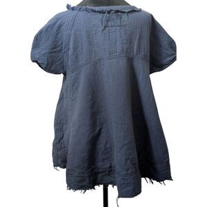 Free People We The Free Raw Edge Tunic Top S Navy Blue Crushed Cotton Swing