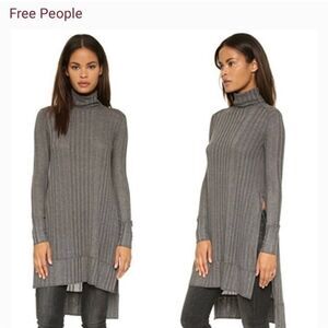 Free People We The Free Ribbed Turtleneck Tunic in Gray Size Small