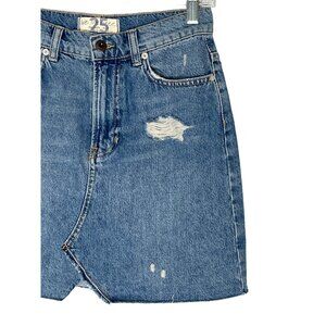 Free People We The Free Ripped Denim Skirt Blue Cotton Casual XS (25)