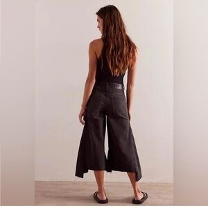 Free People We The Free Ripple Wide Leg Culotte Cropped Thrashed Deconstructed Boho Revolve Cotton Button Fly Raw Edges Jeans NWT