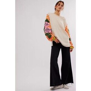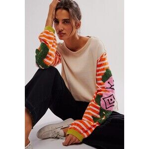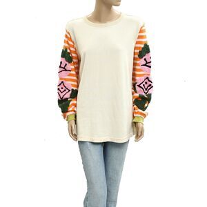 Free People We The Free Rose Stem Tee Tunic Top Embroidered Striped L New 283285