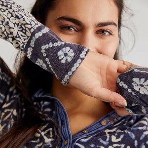 Free People We The Free Shibori Dreams Tee Cotton Printed Blouse Top S