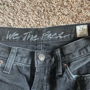 Free People We The Free Sofia Cutoff Shorts Size 26 Waist: 13.5" Rise: 9" Inseam: Just shy of 3" Washed Black Cutoff distressed style Button fly Great pre-owned condition!