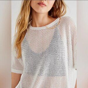 Free People We The Free Sonnet Tee Crochet Mesh Dropped Shoulder Top S