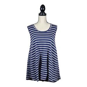 Free People We The Free Striped Loose Tank Top in a size Small. Has a rounded neckline and has two front pockets. Back inverted pleat. Measures approx. 18” armpit to armpit, and 29 1/2” in length. 100% Cotton. In great condition.