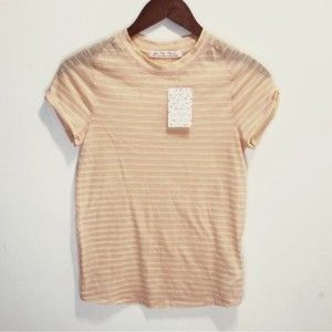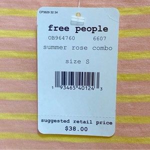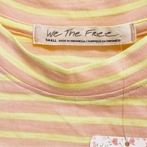 FP We The Free new with tag pink and yellow striped burnout short sleeve t-shirt. Rolled sleeves and fitted style.