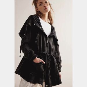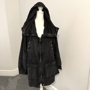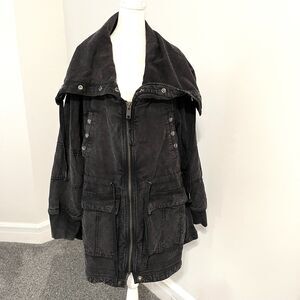 Free People We The Free Surplus Future Parka Womens XL. Mineral Washed Black. Cotton Linen Blend. Zip/Snap Closure.