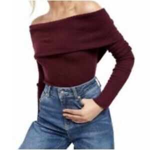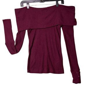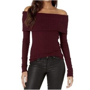 Free People We The Free Sweater Women's Sz XS Burgundy Off Shoulder Ribbed Boho