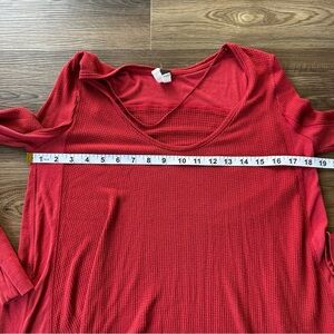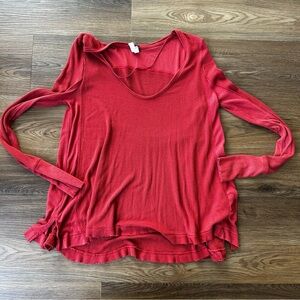 Free People We The Free TT Special Tee Waffle Knit Longsleeve Raw Hem Size XS