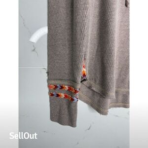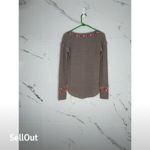 Free People We The Free Tan Henley Thermal Top Sz S cuff embroidered Aztec