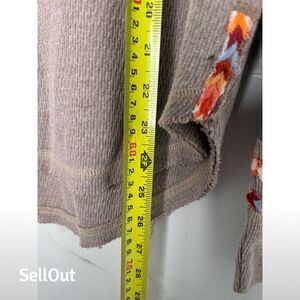 Keywords: Free People, women's t-shirt, long sleeve, henley, Tan, casual, fall fashion, comfortable fit, embroidered, rainbow trim, thermal fabric, machine washable, pre-owned.