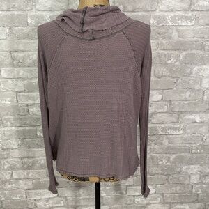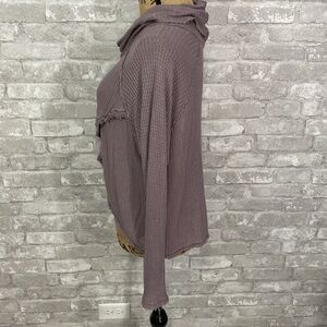 We the free cropped waffle knit Cowlneck top Raw edges Cowlneck Cropped front