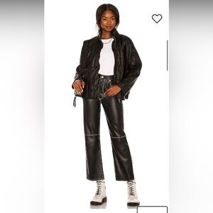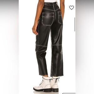 We The Free black vegan leather pants with white contrast stitching. Measures approximately 14 inches across waist, 12 inch rise, and 27 inch inseam. Has a hidden button fly. New with tags, just has some wrinkles from storage.