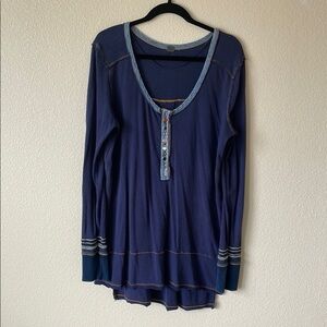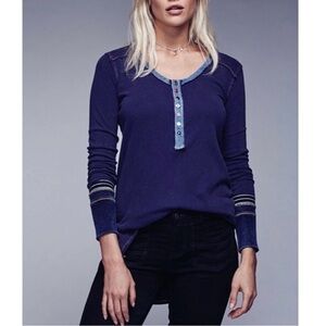 Free People We The Free Thermal Henley Top Women’s M/L Dallas Blue Boho Shirt
