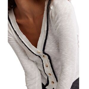 Free People We The Free Tipton Cardigan Womens Size Large. Raw Edge. 100% Cotton. Black Trim.