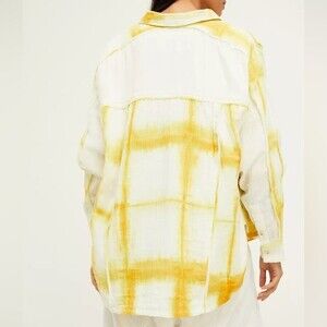 Free People We The Free Top Washed Away Yellow Windowpane Tie Dye Shirt Size XS