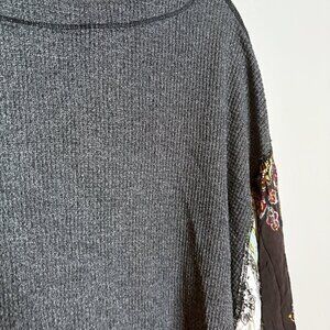 Free People We The Free Waffle Knit Patchwork Long Sleeve Top In Gray
