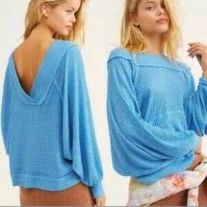 Free People We The Free Westend Thermal Top Blue Oversize Drop Shoulder S Small