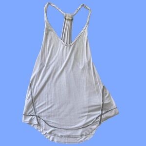 Free People We The Free White Halter Tank Top with Charcoal Grey Seams. Super soft rayon and spandex blend, size small (fits medium). Excellent condition, comes from a pet-free, smoke-free, climate controlled environment.