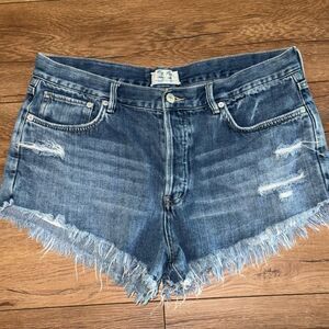 Free People We The Free Womens Distressed Frayed Denim Jean Shorts Blue Size 31
