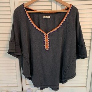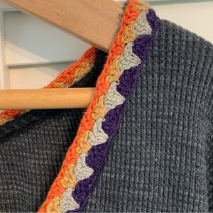Free People We The Free Womens M Groovy Gorgeous Crochet Neck Thermal Top Gray