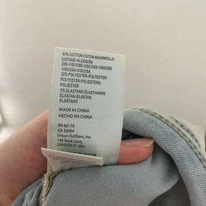 Features: zip fly with button closure, front and back pockets, high rise, wide leg, stretch fabric, light wash denim, cropped silhouette, raw edge hem, cotton blend