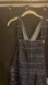 Features: Bib-and-brace design, tapered legs, exaggerated bib pocket detail, rigid denim fabrication, varied distressing throughout