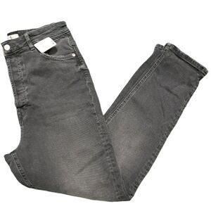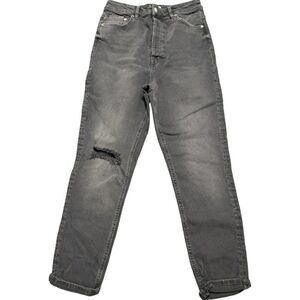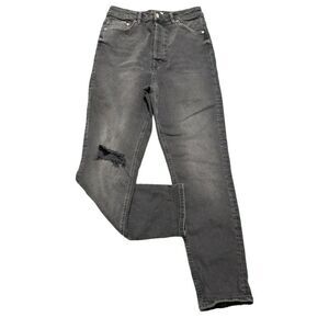 Free People We The Free Zuri Mom Jean Factory Ripped Black High Waist Denim Jeans Button Closure Size 31