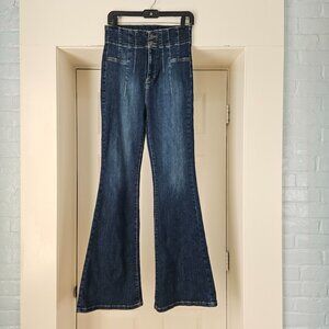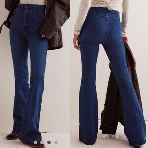 Free People We The Jayde High Waisted Western Boho Dark Wash Blue Flare Jeans 28