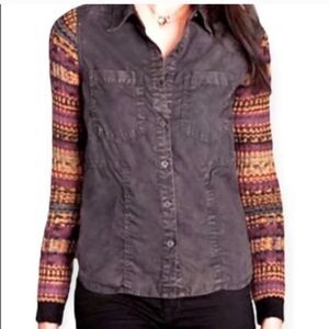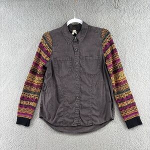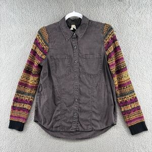 Free People We The Free Boho button down Shirt Mixed Media Sweater Sleeves Small