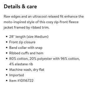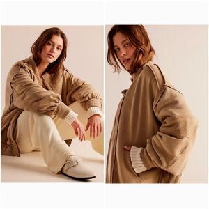 Free People We The Free Lou Oversize Fleece Moto Jacket sz XS