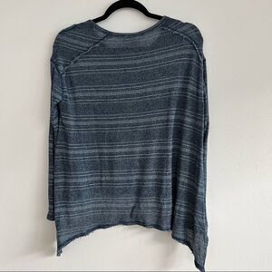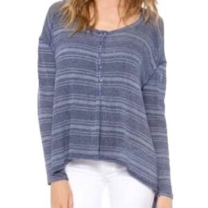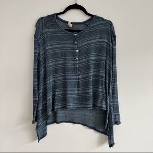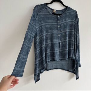 Free People We The Free Slinky Hacci Henley Blue Striped Button Top Knit Sweater
