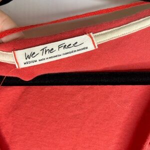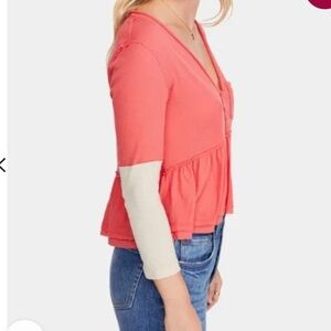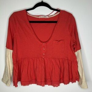 Free People We the Free 3/4 Top Heart of Mine Cotton Flounce-Hem Colorblock Red