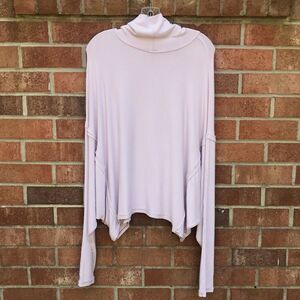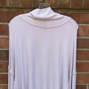 Free People We the Free Alameda Top, sz Medium, Light Lilac Purple, Slouchy High Neck, Oversized, Long Sleeve, Raw Edge Detail, in great pre-owned condition