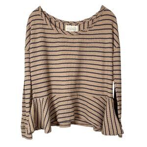Free People We the Free Auntie Em Striped Thermal Peplum Top, GUC, Size Small