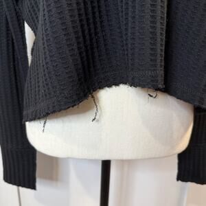 Black ribbed cowl neck Free People We the Free top. In good used condition. This is supposed to be hand washed and hung dry and was accidentally thrown into the regular wash. Sleeves need to be stretched out because they are very tight now.