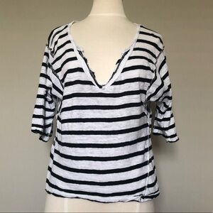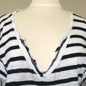 Free People We the Free Black & White Stripe Dolman Sleeve V-neck Top, XS