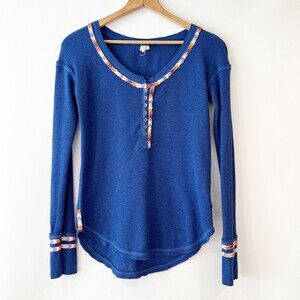 Free People We the Free Blue Rainbow Thermal Henley Small Round Hem