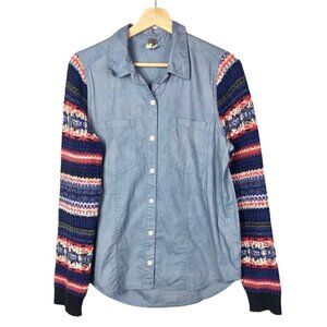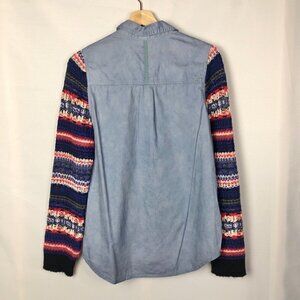 Free People We the Free Chambray Fair Isle Sweater Sleeve Button Down M