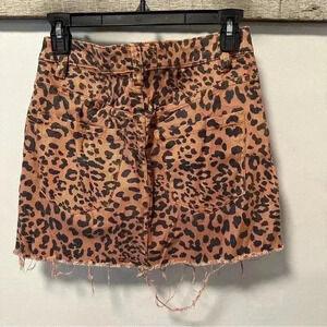 Free People “We the Free” Cheetah Print Denim Zip It Up Printed Mini Skirt