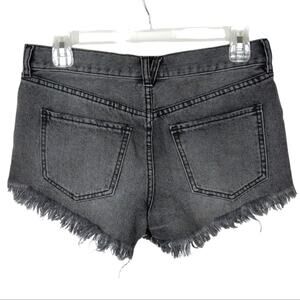 Factory distressed and whiskering. Cut off, raw hem shorts. Button fly closure. 5 pocket styling.