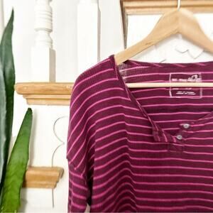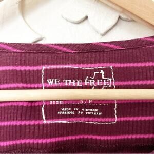 Free People We the Free Garvey Purple Stripe Cotton Blend Henley Top Size Small