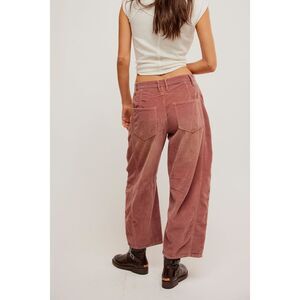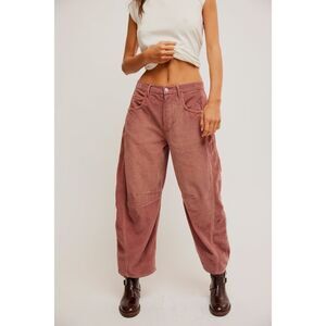 Free People We the Free Good Luck Mid Rise Barrel Pants Jeans Cord Rose 25 NEW