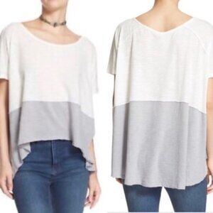 Free People We the Free Gray & Ivory Midnight Colorblock High Low T-Shirt XS